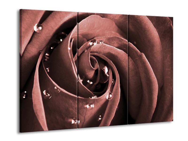 Glasschilderij Roos | Bruin, Rood | 60x90cm 3Luik