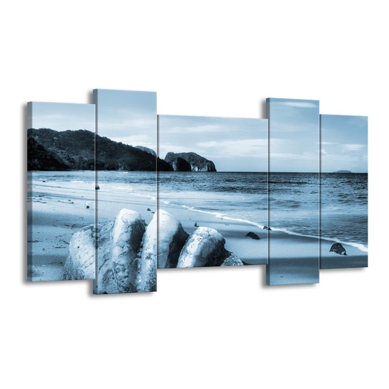 Glasschilderij Schelp, Strand | Blauw | 120x65cm 5Luik