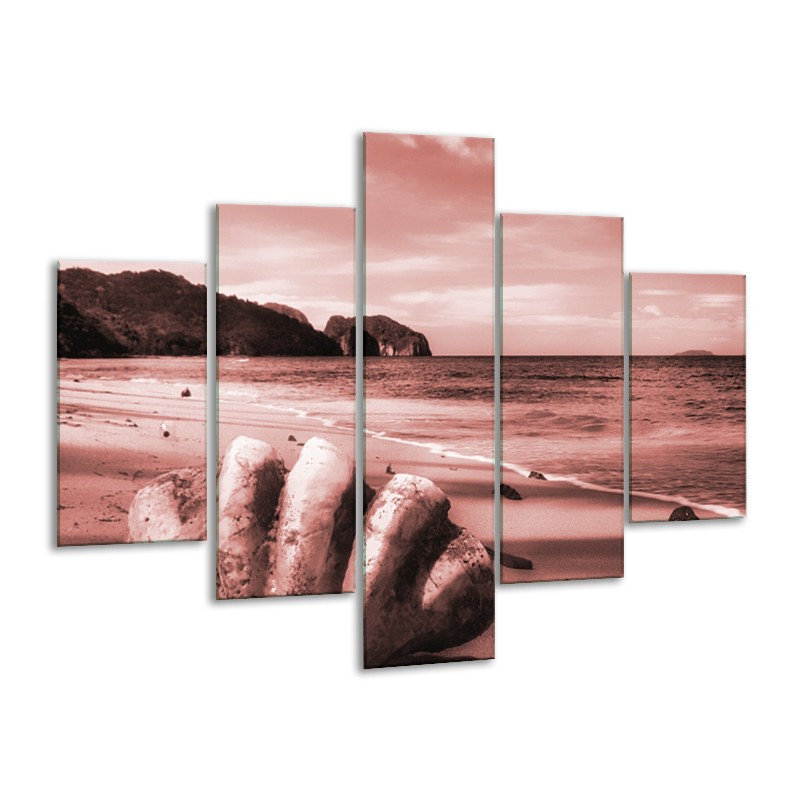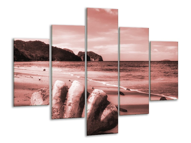 Glasschilderij Schelp, Strand | Bruin, Rood | 100x70cm 5Luik
