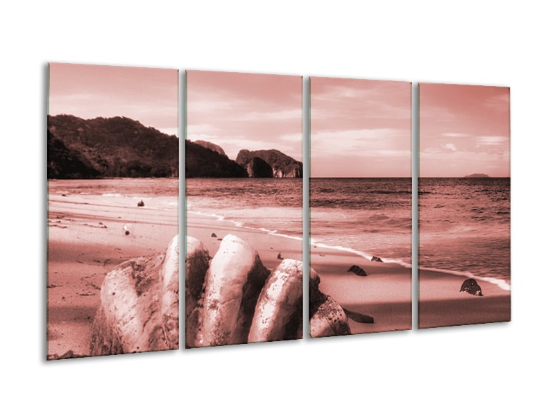 Glasschilderij Schelp, Strand | Bruin, Rood | 160x80cm 4Luik
