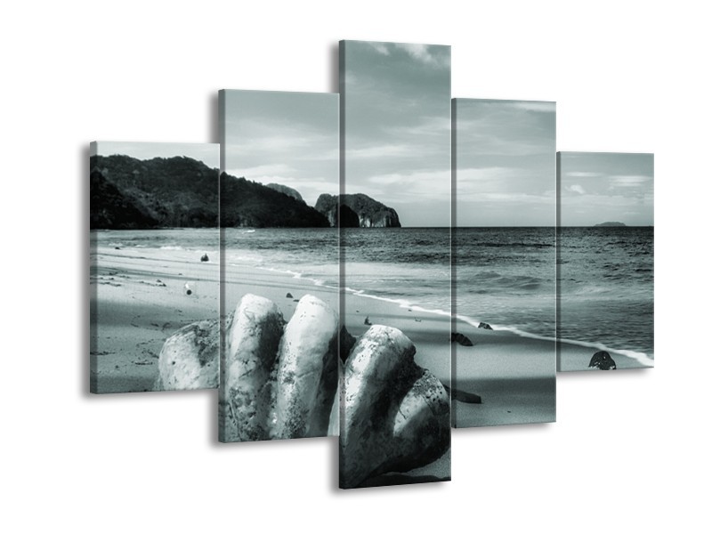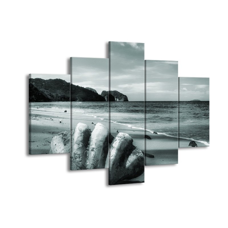 Glasschilderij Schelp, Strand | Grijs, Groen | 150x105cm 5Luik