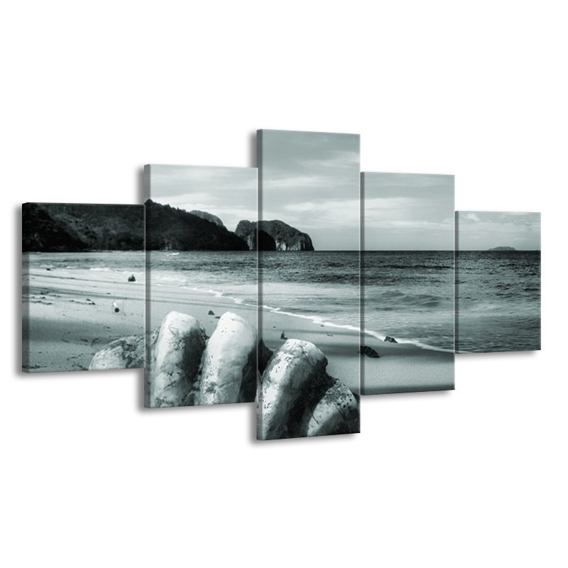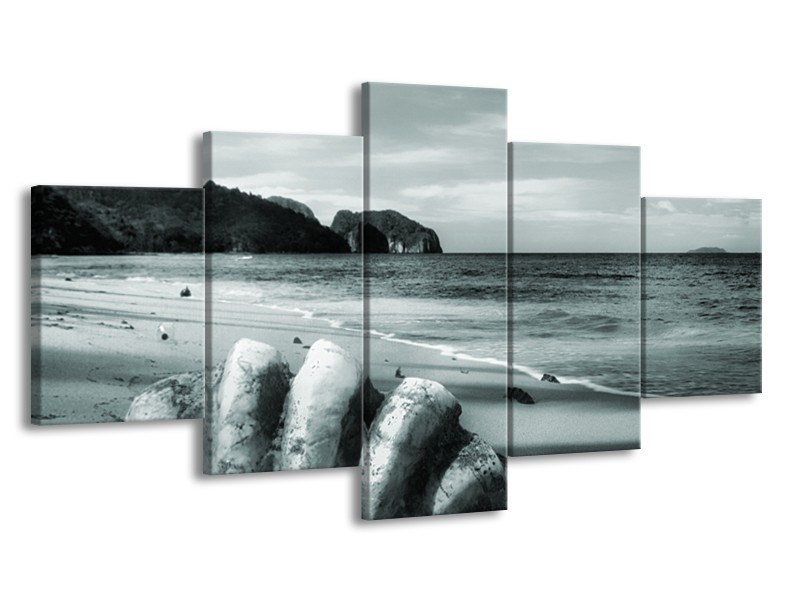 Glasschilderij Schelp, Strand | Grijs, Groen | 150x80cm 5Luik