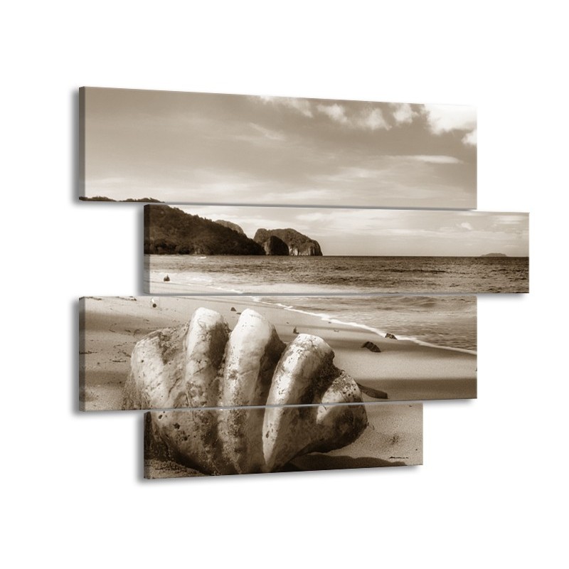 Glasschilderij Schelp, Strand | Sepia | 115x85cm 4Luik