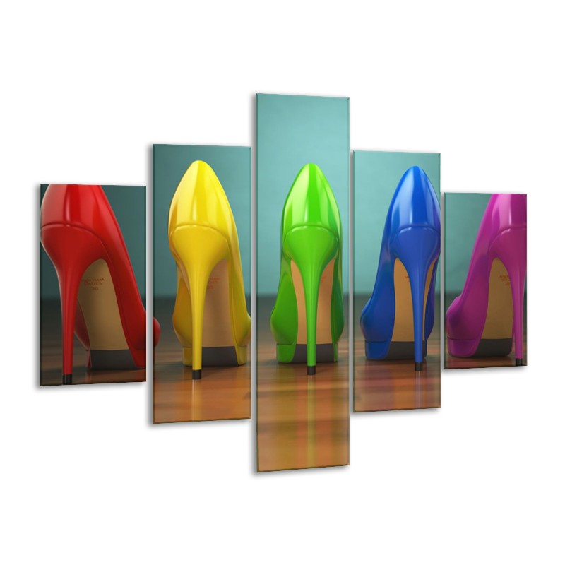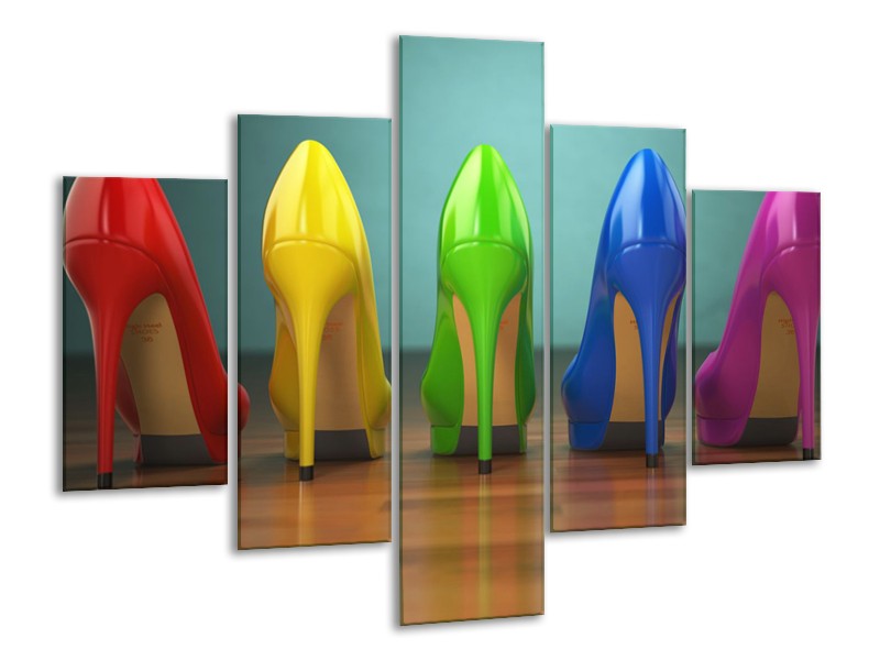 Glasschilderij Schoenen, Vrouw | Bruin, Groen, Geel | 100x70cm 5Luik