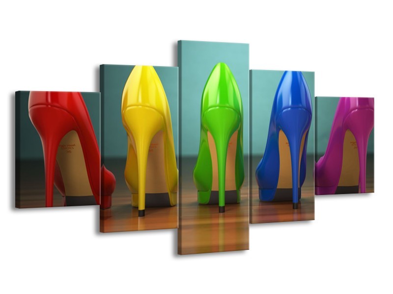 Glasschilderij Schoenen, Vrouw | Bruin, Groen, Geel | 150x80cm 5Luik
