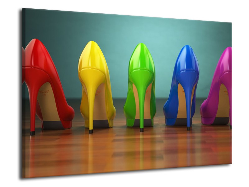 Glasschilderij Schoenen, Vrouw | Bruin, Groen, Geel | 70x50cm 1Luik