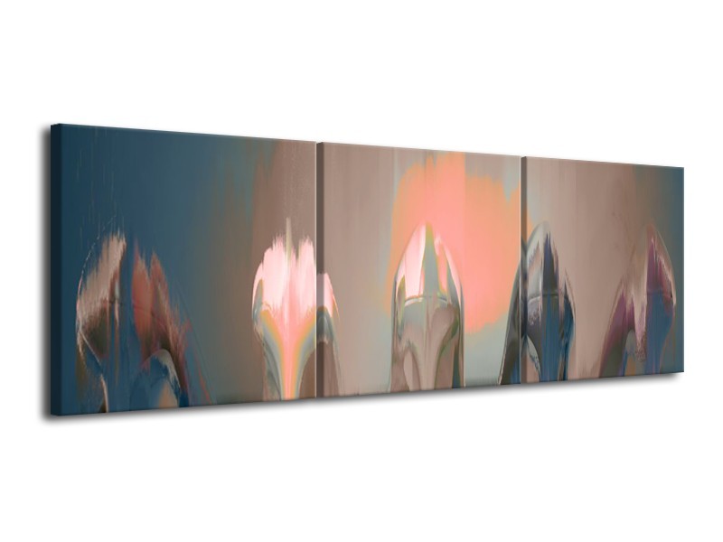 Glasschilderij Schoenen, Vrouw | Grijs, Bruin | 120x40cm 3Luik