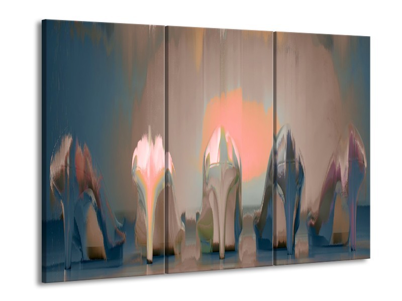 Glasschilderij Schoenen, Vrouw | Grijs, Bruin | 60x90cm 3Luik