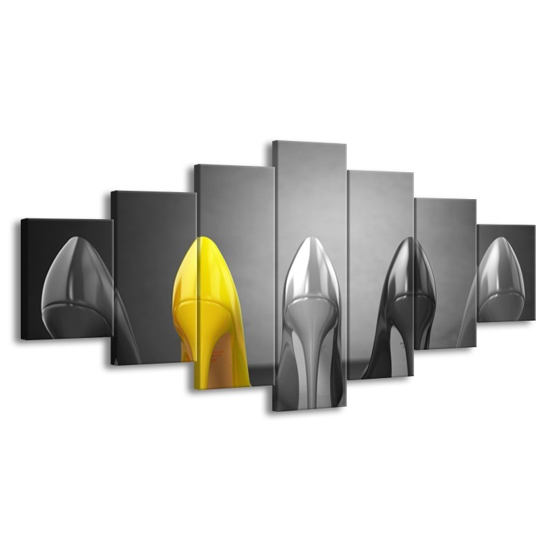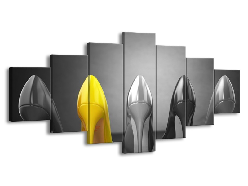 Glasschilderij Schoenen, Vrouw | Grijs, Geel | 210x100cm 7Luik