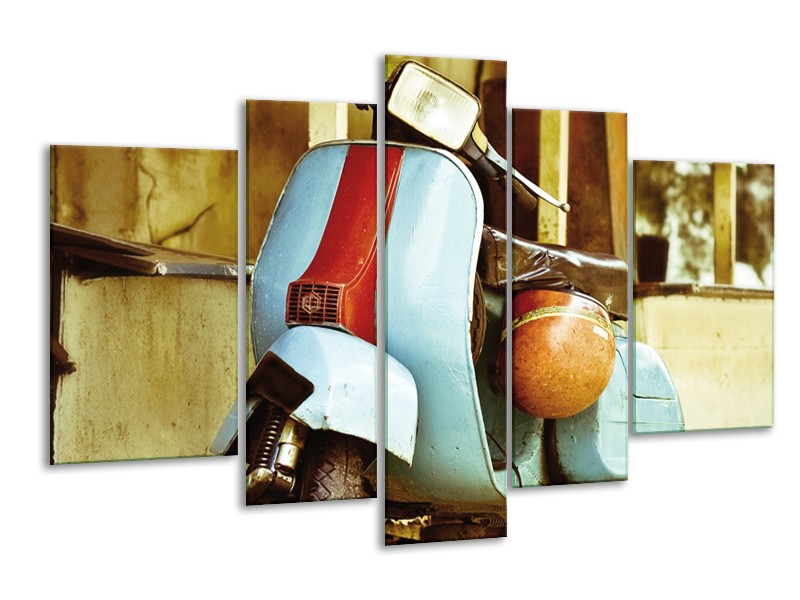 Glasschilderij Scooter, Motor | Bruin, Geel, Blauw | 170x100cm 5Luik