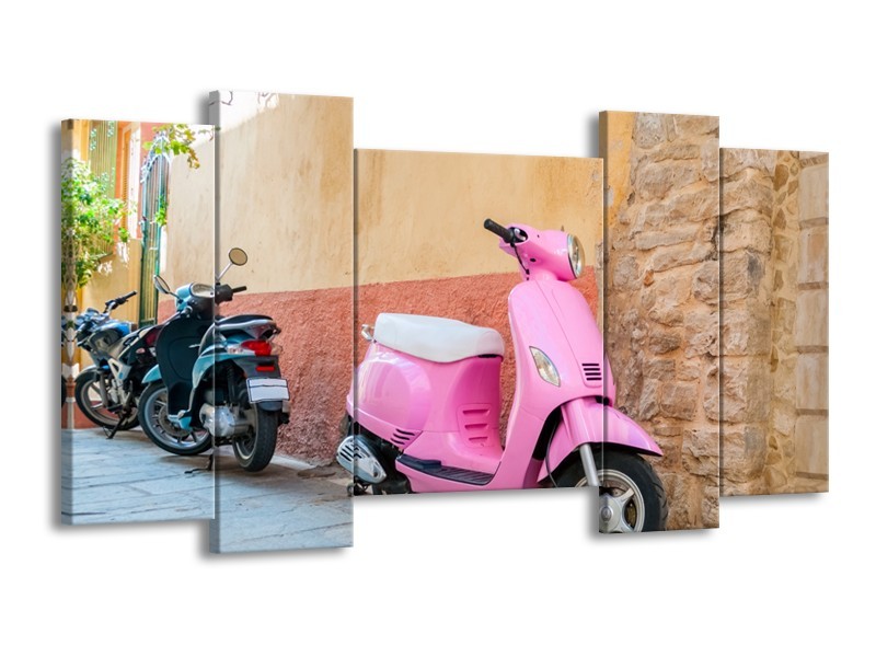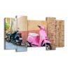 Glasschilderij Scooter, Motor | Bruin, Roze, Crème | 120x65cm 5Luik