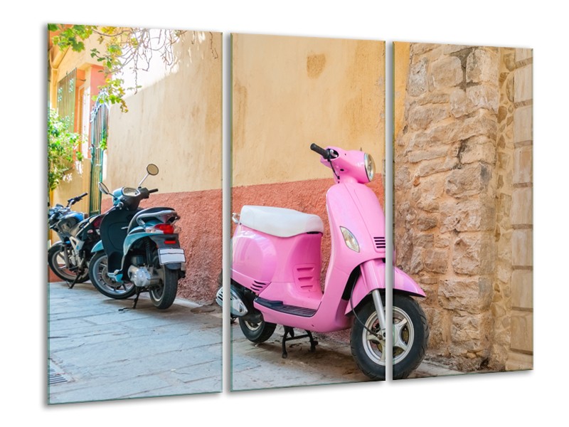 Glasschilderij Scooter, Motor | Bruin, Roze, Crème | 120x80cm 3Luik