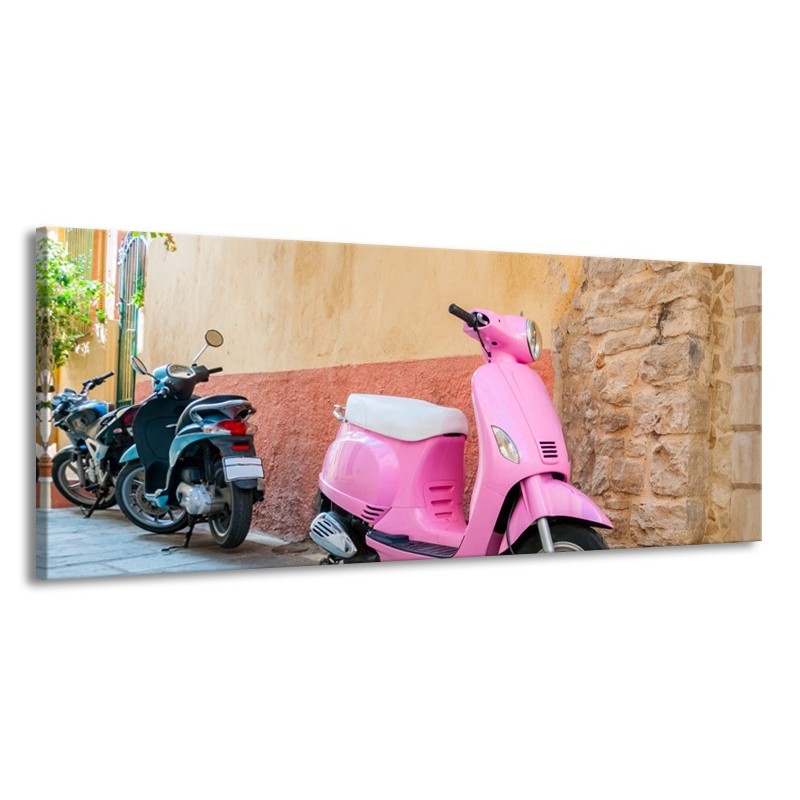 Glasschilderij Scooter, Motor | Bruin, Roze, Crème | 145x58cm 1Luik