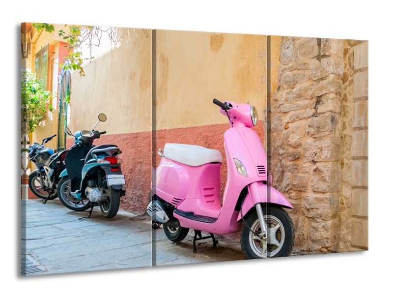 Glasschilderij Scooter, Motor | Bruin, Roze, Crème | 165x100cm 3Luik
