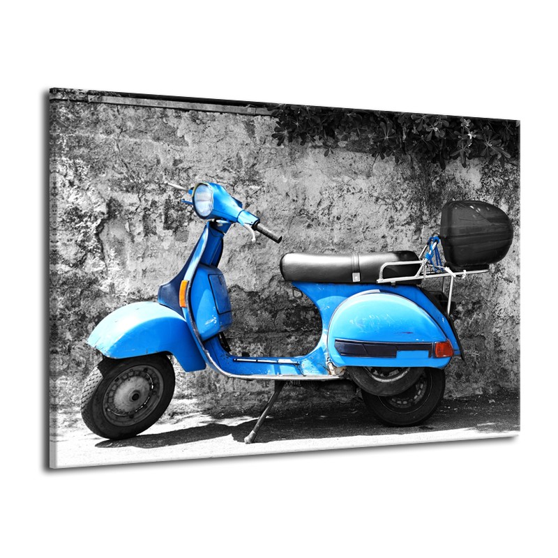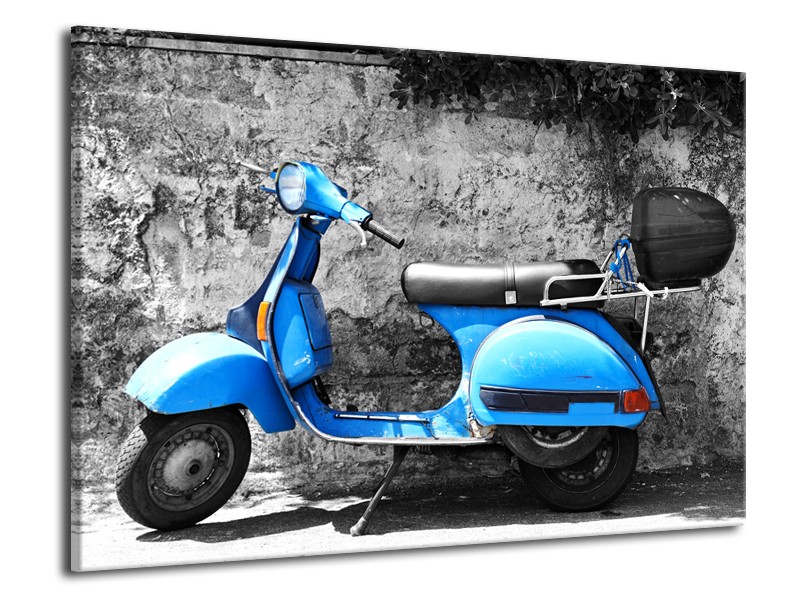 Glasschilderij Scooter, Motor | Grijs, Blauw | 70x50cm 1Luik