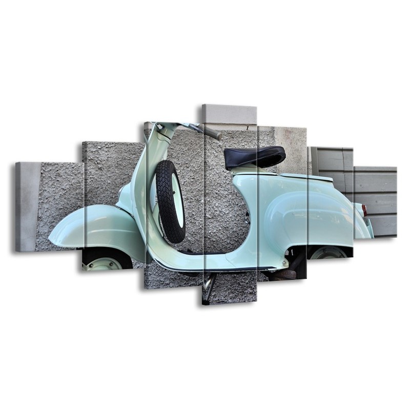 Glasschilderij Scooter, Motor | Groen, Grijs | 210x100cm 7Luik