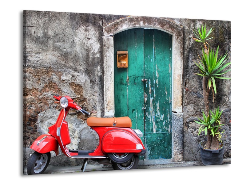 Glasschilderij Scooter, Motor | Groen, Rood, Grijs | 100x70cm 1Luik
