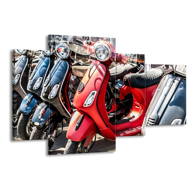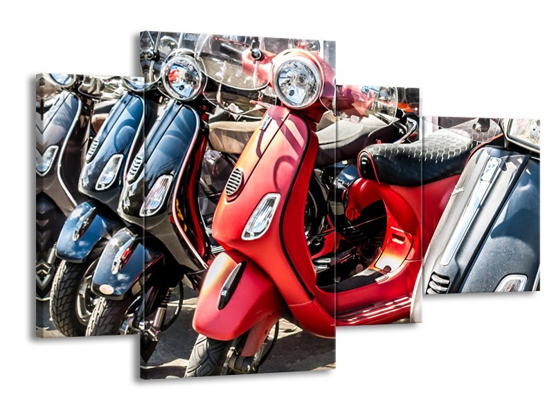 Glasschilderij Scooter, Motor | Rood, Grijs | 120x75cm 4Luik