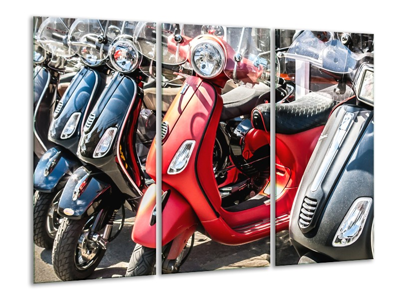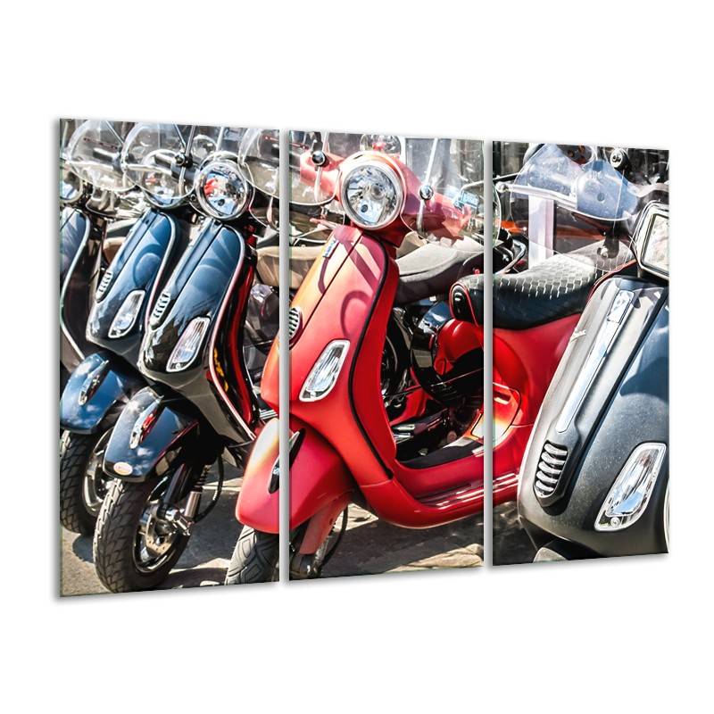 Glasschilderij Scooter, Motor | Rood, Grijs | 120x80cm 3Luik