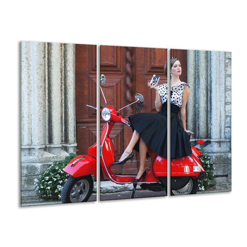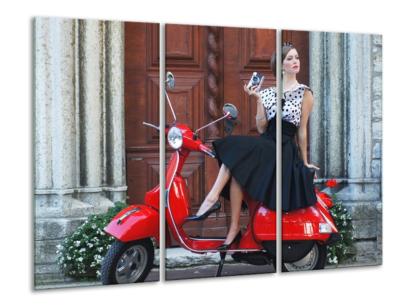 Glasschilderij Scooter, Motor | Rood, Zwart, Bruin | 120x80cm 3Luik