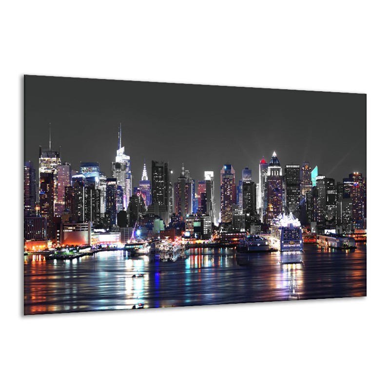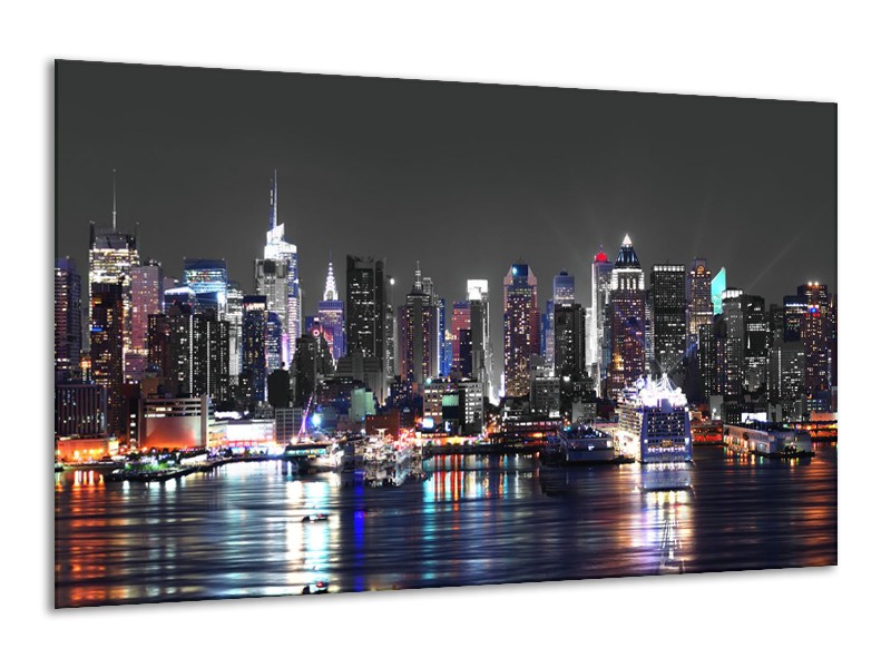 Glasschilderij Skyline, Steden | Grijs, Zwart, Paars | 120x70cm 1Luik