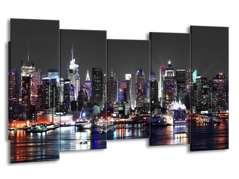 Glasschilderij Skyline, Steden | Grijs, Zwart, Paars | 150x80cm 5Luik
