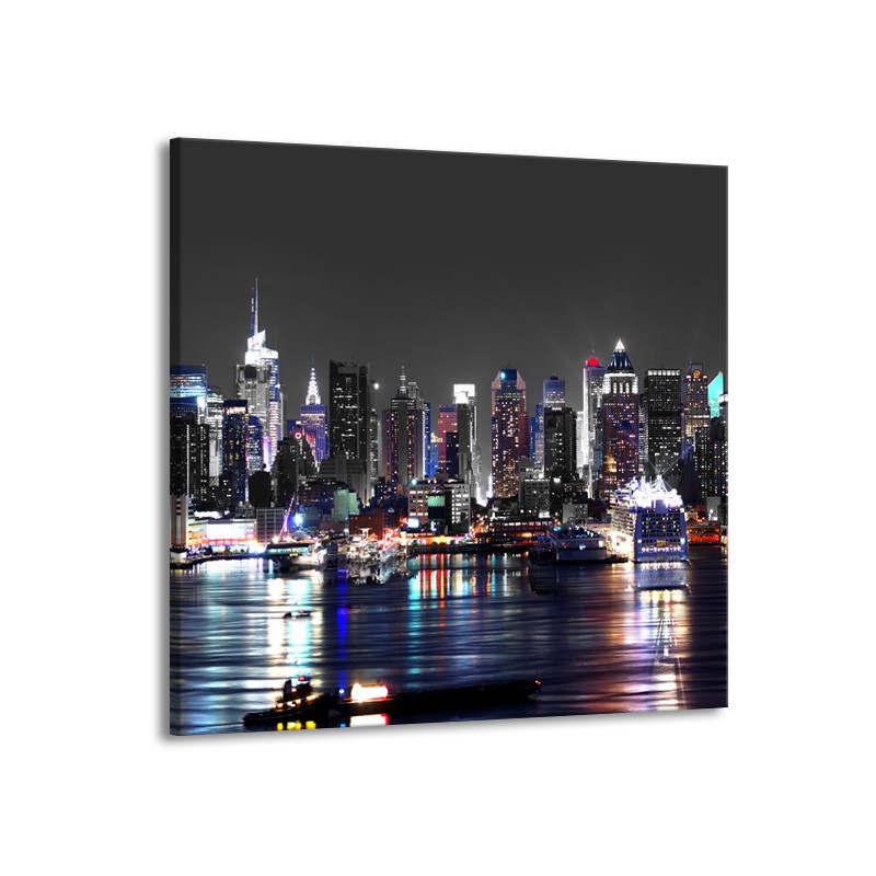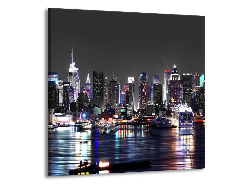 Glasschilderij Skyline, Steden | Grijs, Zwart, Paars | 70x70cm 1Luik