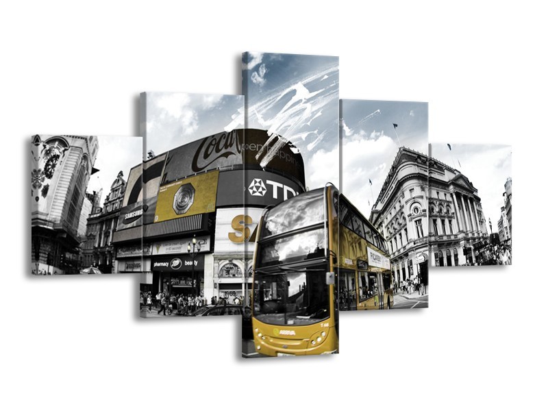 Glasschilderij Steden, Abstract | Geel, Grijs, Wit | 125x70cm 5Luik