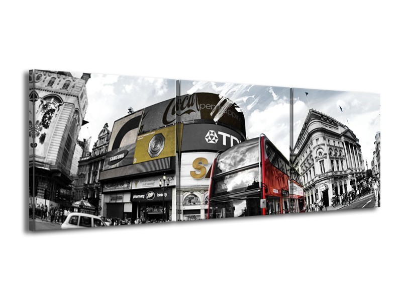 Glasschilderij Steden, Abstract | Zwart, Grijs, Rood | 150x50cm 3Luik
