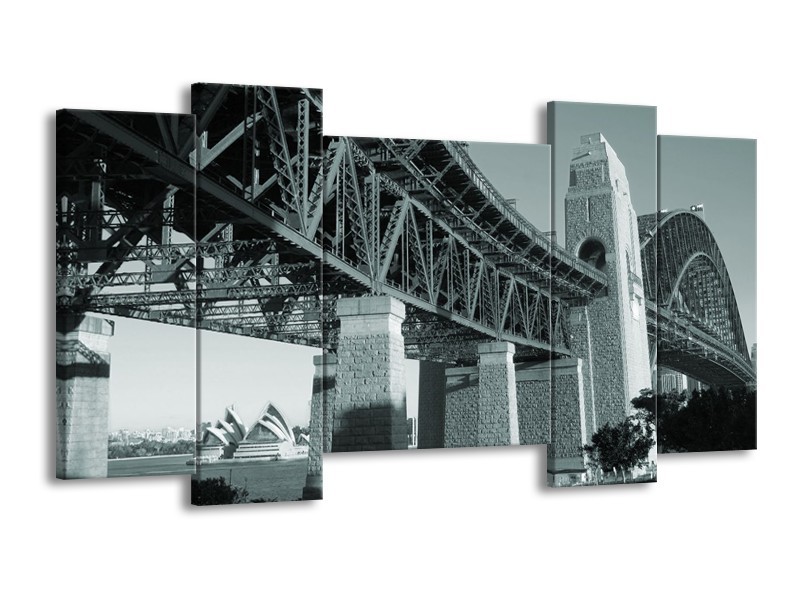 Glasschilderij Steden, Brug | Grijs, Groen | 120x65cm 5Luik