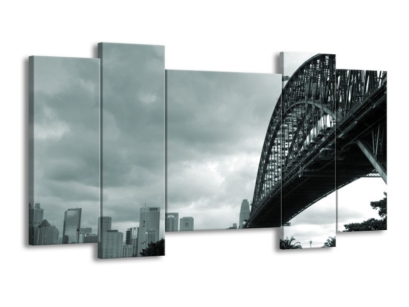 Glasschilderij Steden, Brug | Grijs, Groen | 120x65cm 5Luik