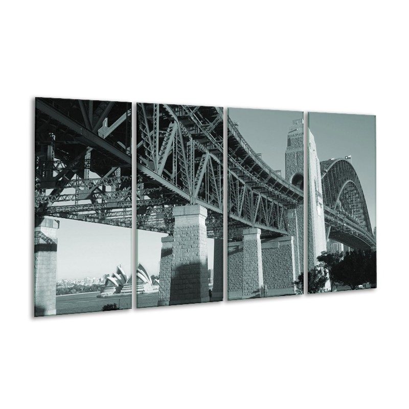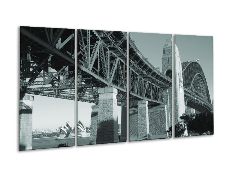 Glasschilderij Steden, Brug | Grijs, Groen | 160x80cm 4Luik