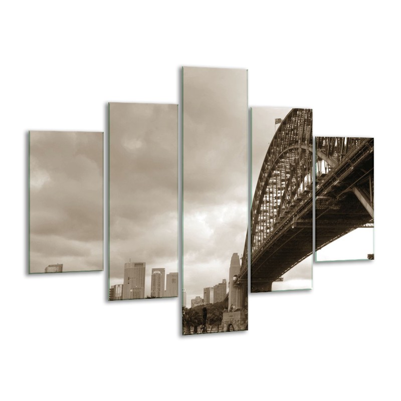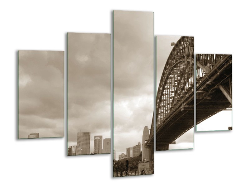 Glasschilderij Steden, Brug | Sepia | 100x70cm 5Luik