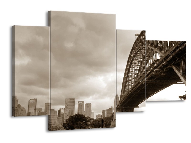 Glasschilderij Steden, Brug | Sepia | 120x75cm 4Luik