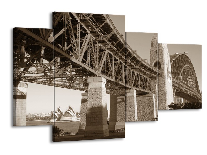Glasschilderij Steden, Brug | Sepia | 120x75cm 4Luik