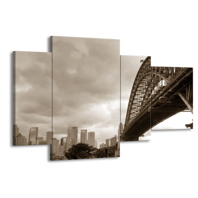 Glasschilderij Steden, Brug | Sepia | 120x75cm 4Luik