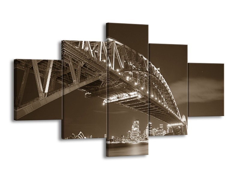 Glasschilderij Steden, Brug | Sepia | 125x70cm 5Luik