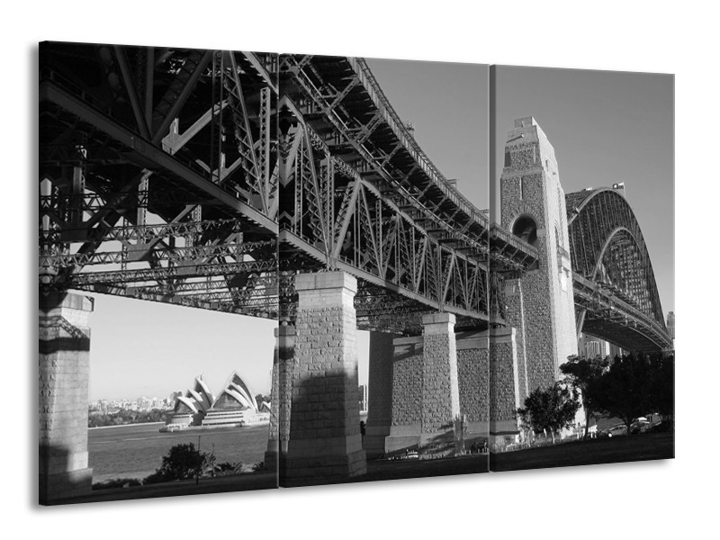 Glasschilderij Steden, Brug | Zwart, Grijs | 165x100cm 3Luik