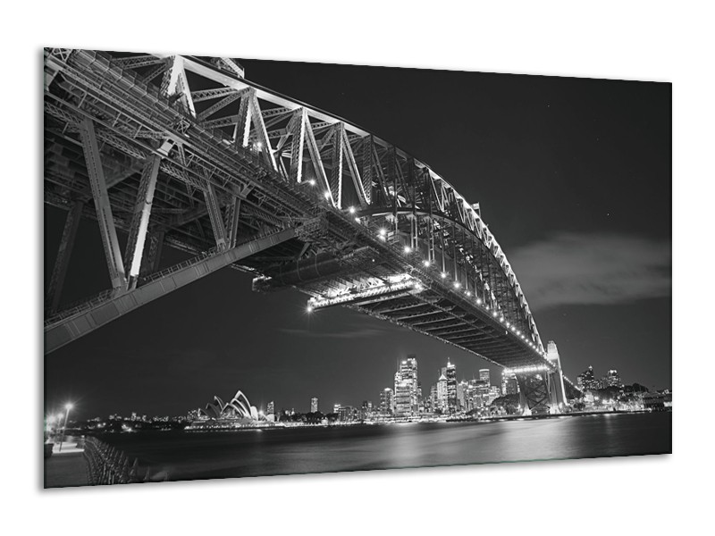 Glasschilderij Steden, Brug | Zwart, Wit, Grijs | 120x70cm 1Luik