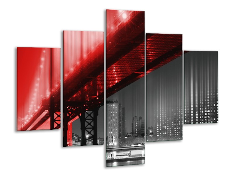 Glasschilderij Steden, Brug | Zwart, Wit, Rood | 100x70cm 5Luik