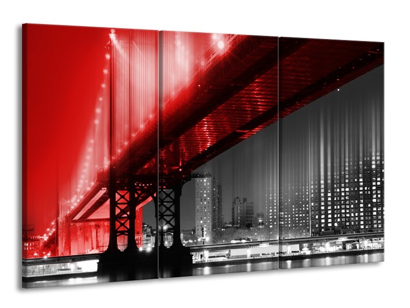 Glasschilderij Steden, Brug | Zwart, Wit, Rood | 165x100cm 3Luik