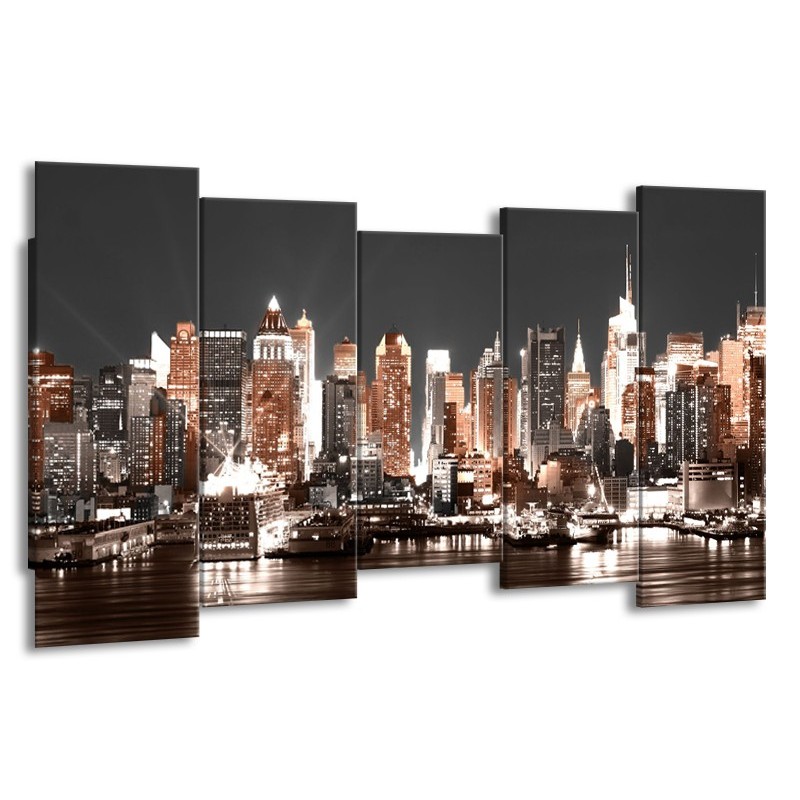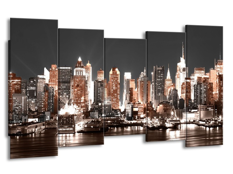 Glasschilderij Steden | Grijs, Bruin, Goud | 150x80cm 5Luik
