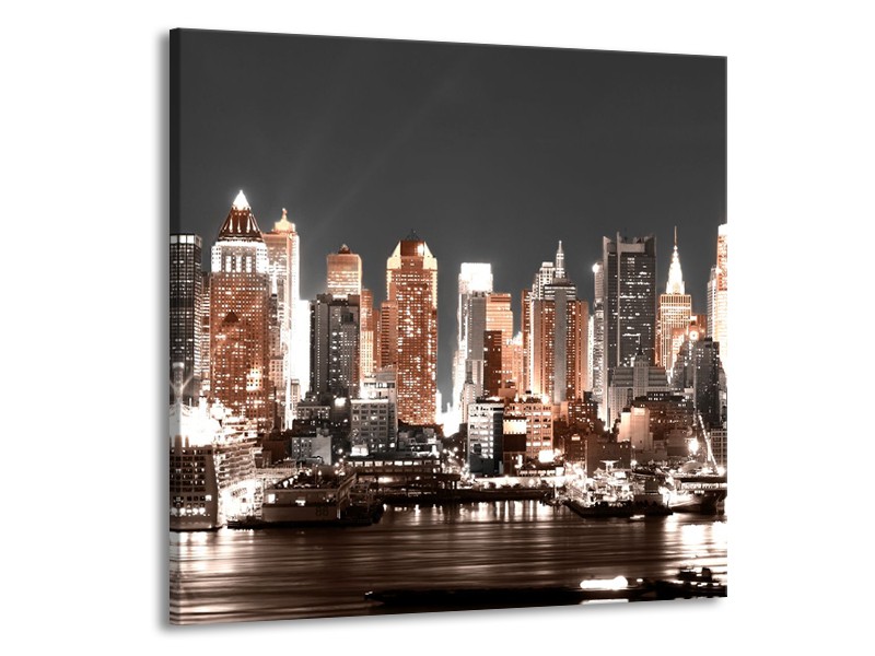 Glasschilderij Steden | Grijs, Bruin, Goud | 70x70cm 1Luik