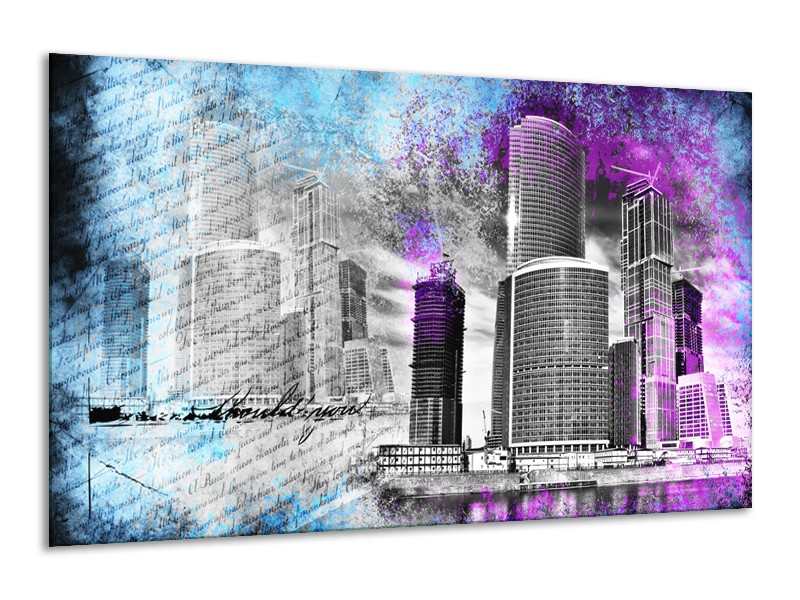 Glasschilderij Steden | Grijs, Paars, Blauw | 120x70cm 1Luik