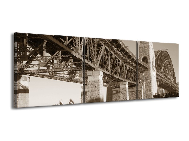 Glasschilderij Steden | Sepia | 150x50cm 3Luik