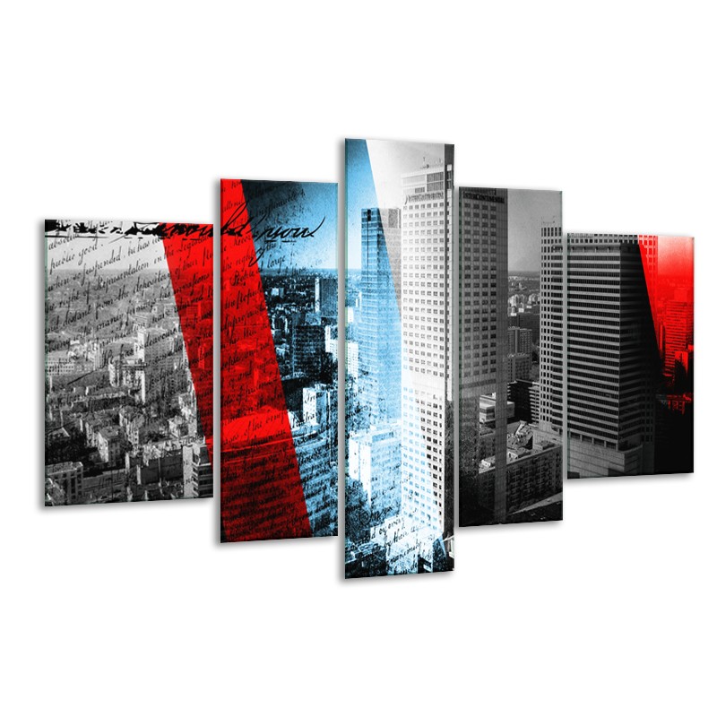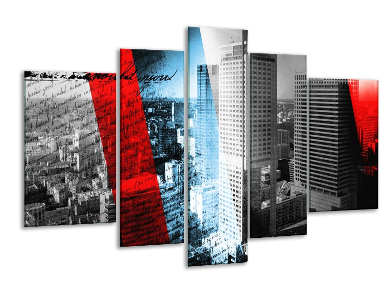 Glasschilderij Steden, Wolkenkrabber | Zwart, Blauw, Rood | 170x100cm 5Luik