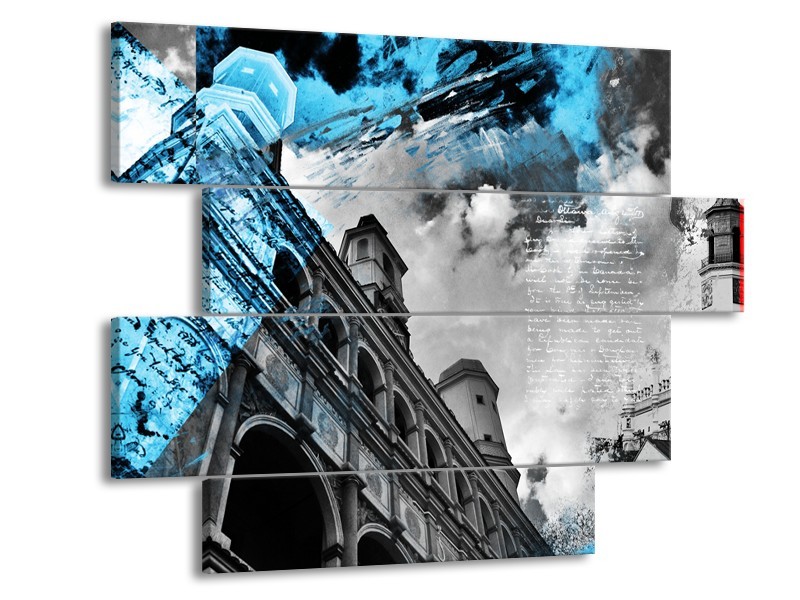 Glasschilderij Steden | Zwart, Blauw, Rood | 115x85cm 4Luik
