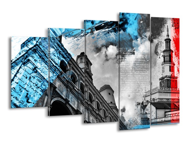 Glasschilderij Steden | Zwart, Blauw, Rood | 150x100cm 5Luik