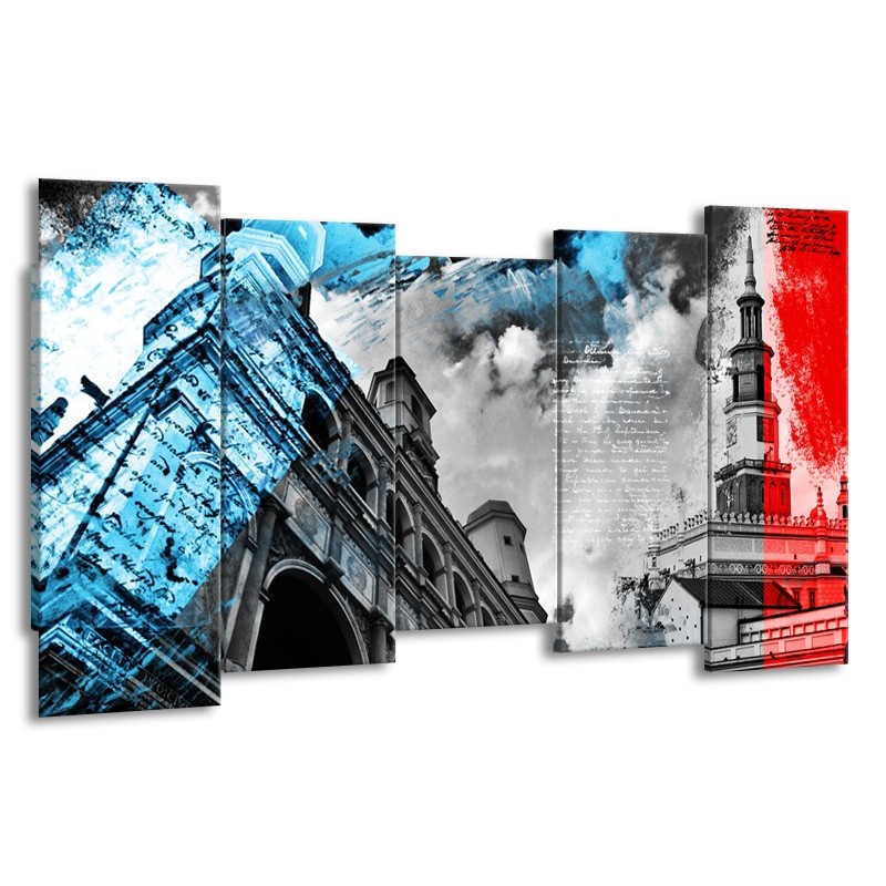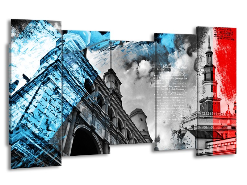 Glasschilderij Steden | Zwart, Blauw, Rood | 150x80cm 5Luik