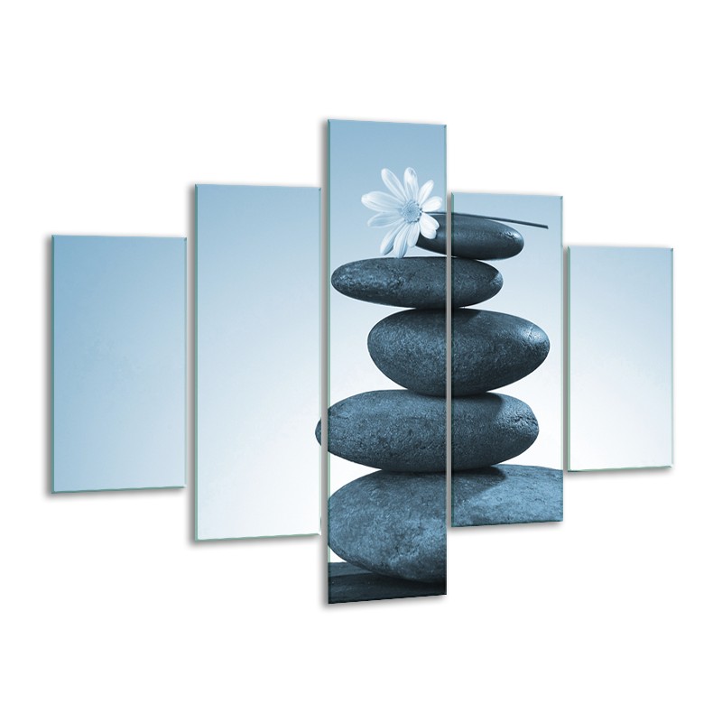 Glasschilderij Stenen | Blauw | 100x70cm 5Luik
